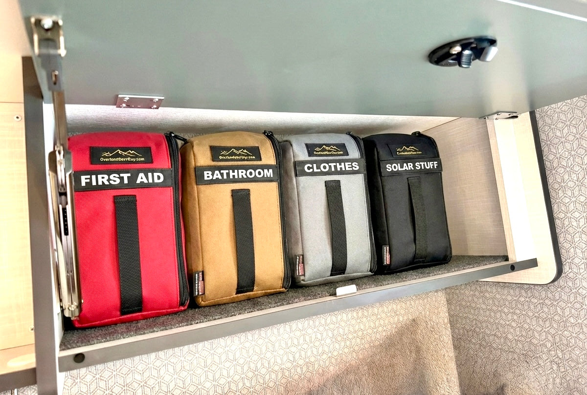 Stop the cabinet clutter and maximize your Winnebago EKKO’s unique storage spaces. Our EKKO-ready Travel Bags are precision-engineered to create dedicated "homes" for every category of gear, from Warm Clothes and Dog Stuff to tech cables and kitchen utensils.