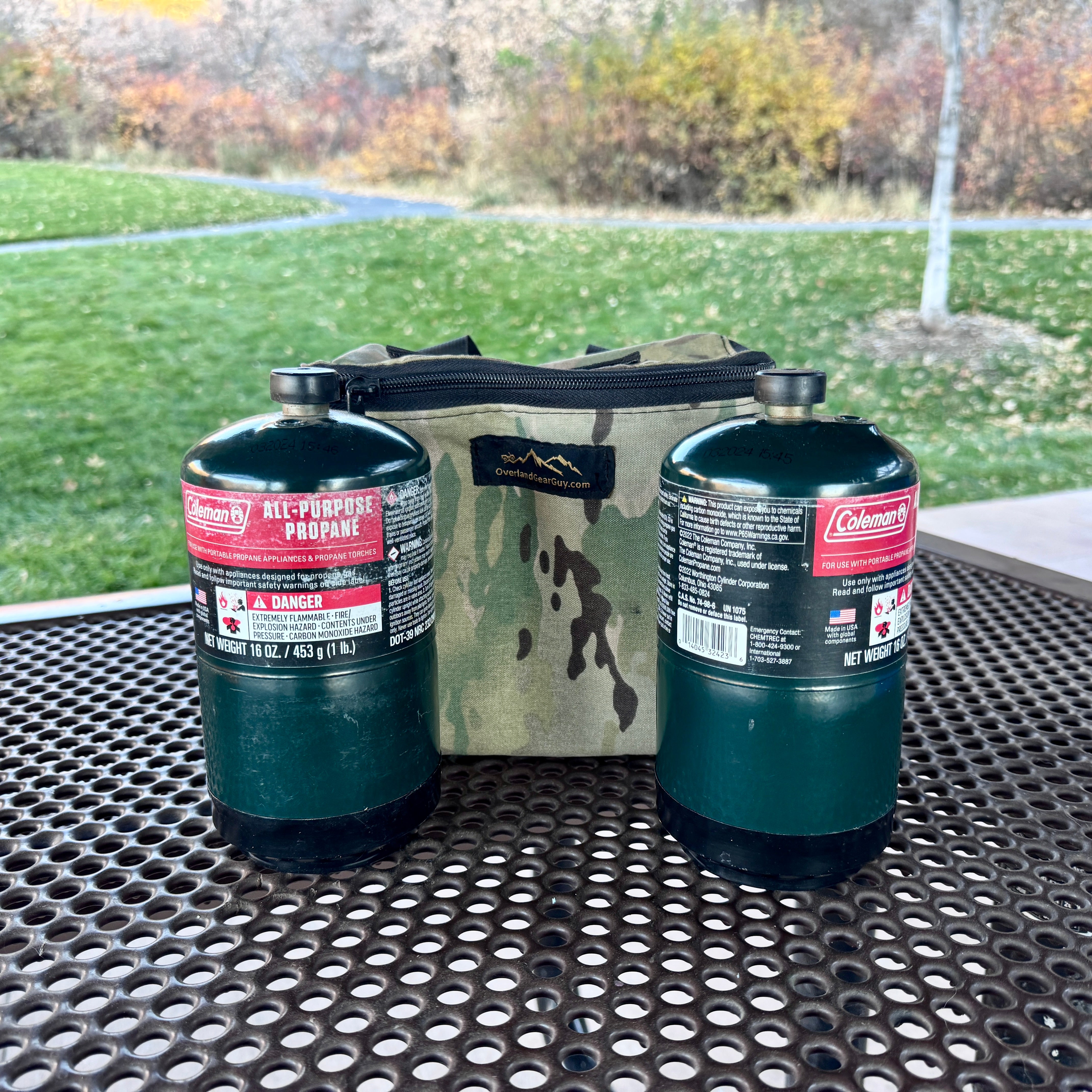 Upgrade your camping setup with our Dual Propane Bottle Pouch.