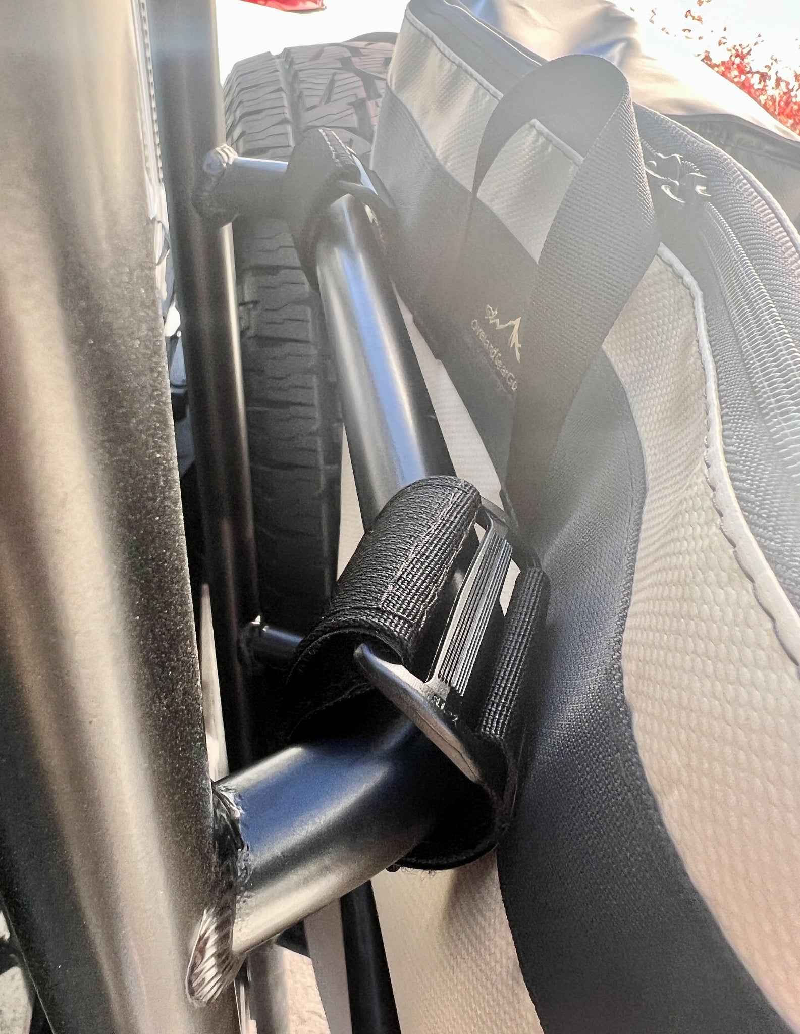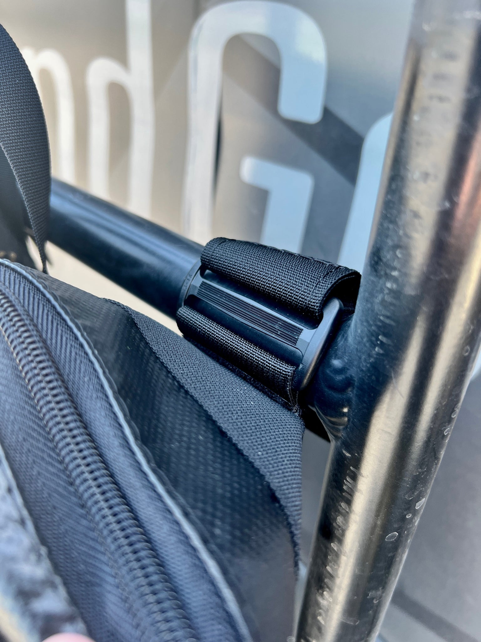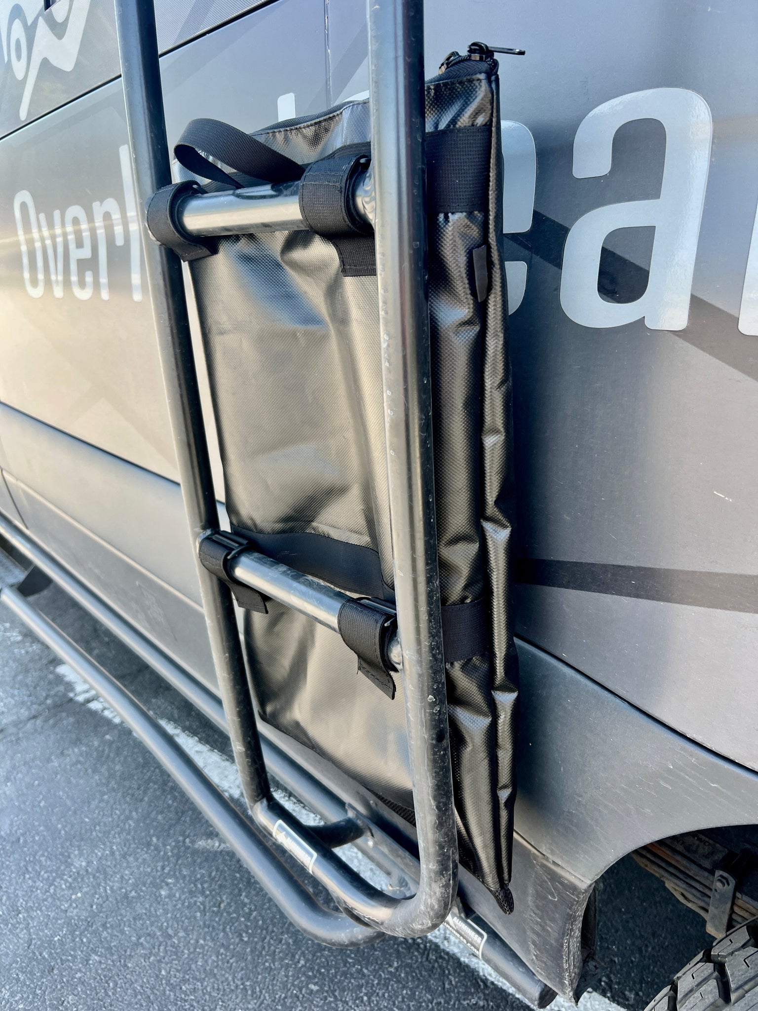 Disclaimer: Do NOT drive with bag mounted on the Outside of ladder, Flip it to the inside of the ladder. Also be careful not to overfill it with sharp heavy objects, you do not want it against the paint on the vehicle.